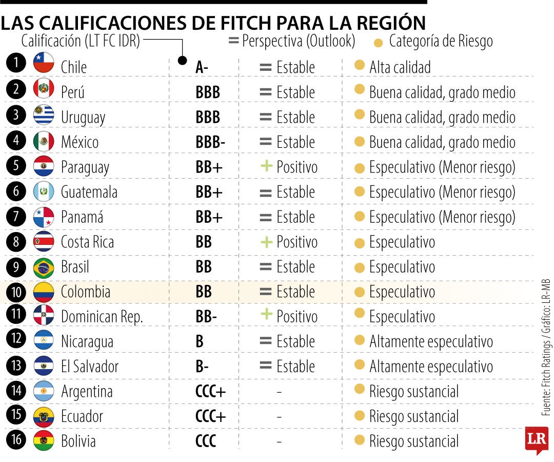 Un grupo de 10 países de la región mantiene una calificación crediticia estable, mientras que Chile es el único en categoría A