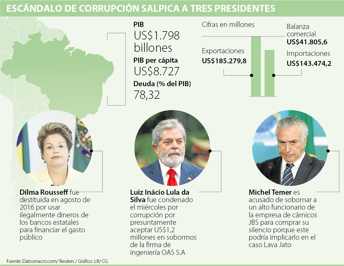 En 10 meses los escándalos de corrupción tumbaron a la expresidenta Dilma Rousseff, condenaron al también exmandatario Luiz Inácio Lula da Silva y acorralan a la actual cabeza del gobierno brasileño, Michel Temer.