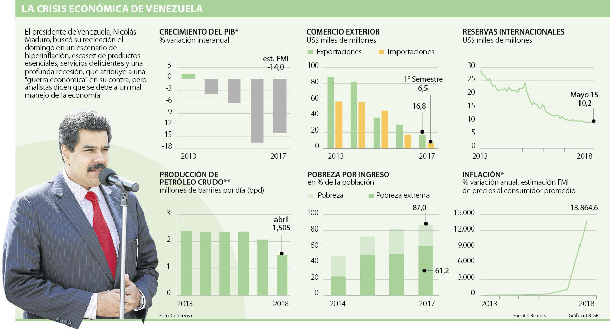 Más allá de los resultados finales de las elecciones presidenciales que se hicieron ayer en Venezuela, el panorama para su economía sigue siendo la misma. Las deudas y la presión internacional tienen acorraladas las cuentas de ese país, que ha visto como sus bolsillos se han desocupado a la par de la mala administración del Gobierno y de la caída de los precios internacionales del petróleo.