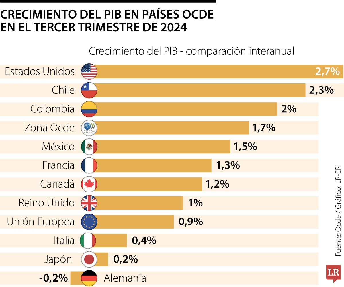 Estados Unidos y Chile figuran como los países con los mejores números del tercer trimestre de 2024 (2,7% y 2,3% cada uno)