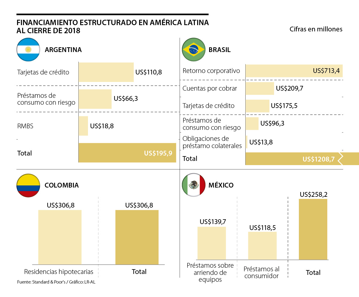 A pesar de la caída en este tipo de negocios, la firma estadounidense ve un repunte en el mercado brasilero durante 2019 gracias a la titularizadora Fundo de Investimento em Direitos Creditório, del cual se prevé que podría participar en la demanda de garantías inmobiliarias, préstamos en el sector agropecuario y financiación hipotecaria y mayor liquidez financiera. En 2018, la nación registró US$1.208,7 millones en este tipo de financiación, la más alta en la región.