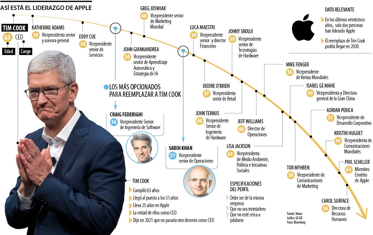 Pero, ¿cómo más debe ser ese nuevo CEO de Apple? Según los analistas y con base a la tradición de la empresa de la manzana, los criterios de selección estarían enfocados en edad, experiencia y veteranía.