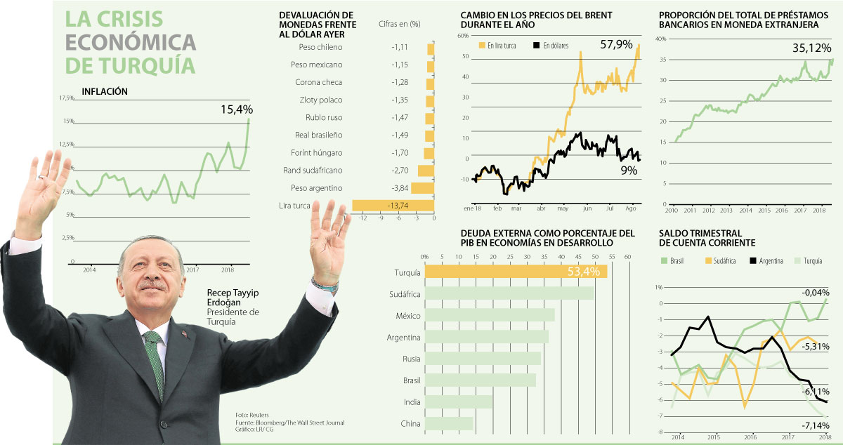 Este crecimiento ha hecho que se vean afectadas las reservas de divisas extranjeras de Turquía, que llegaban a US$78.330 millones a finales de julio, a diferencia de finales del año pasado cuando el monto bordeaba los US$100.000 millones.