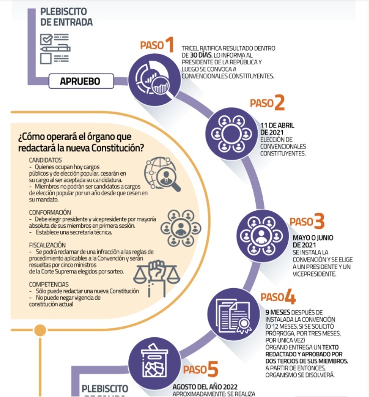 Con el triunfo del apruebo, se activaría formalmente el proceso constitucional, el que volverá a reunir en las urnas a los ciudadanos en abril y luego en torno a un plebiscito de salida donde se deberá ratificar el nuevo documento, derogando orgánicamente la actual Constitución.