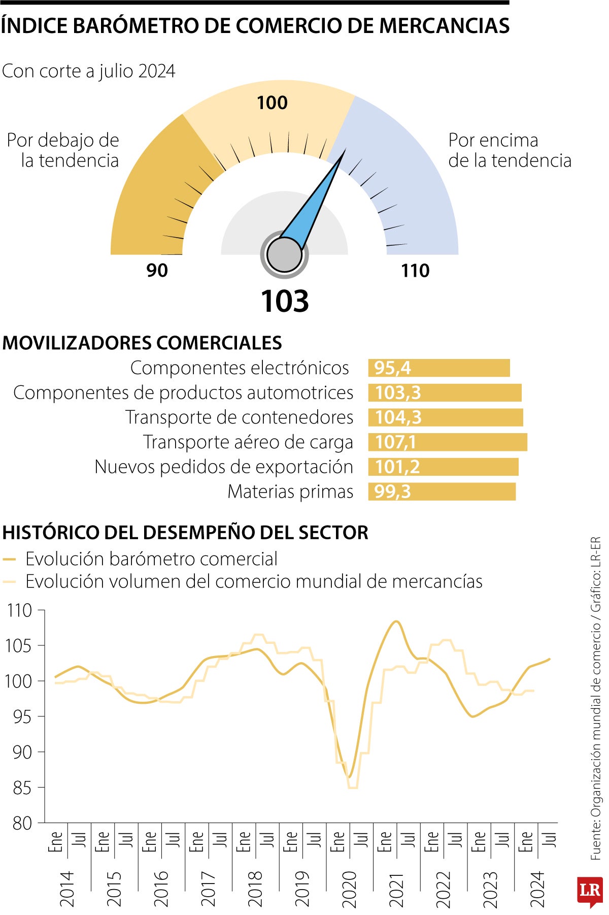 La Organización Mundial del Comercio, OMC, actualizó el Barómetro del Comercio de Mercancías que evalúa en tiempo real la trayectoria del comercio de mercancías y se mide en relación a la tendencia del mercado.