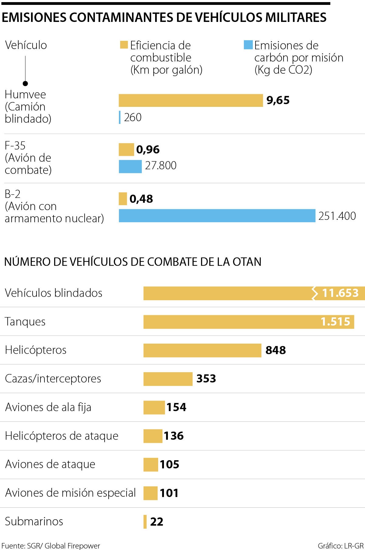 El informe dice que las fuerzas armadas más grandes del mundo emiten más gases de efecto invernadero que muchos países juntos como Perú y Portugal.