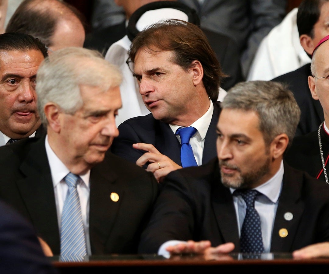 Foto: Reuters / Los presidentes de Tabaré Vásquez (Uruguay) y Mario Abdo Benítez (Paraguay) fueron de los pocos mandatarios que asistieron a la cita. Al fondo el presidente electo de Uruguay Luis Lacalle Pou
