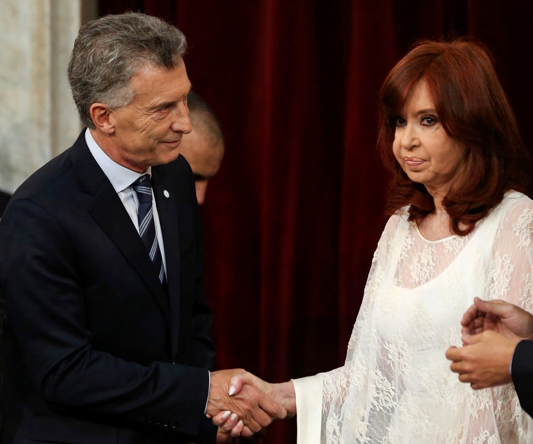 Foto: Reuters / El momento incómodo del saludo de Mauricio Macri a Cristina Fernández de Kirchner, quien no lo quiso mirar a la cara cuando le estrechó la mano
