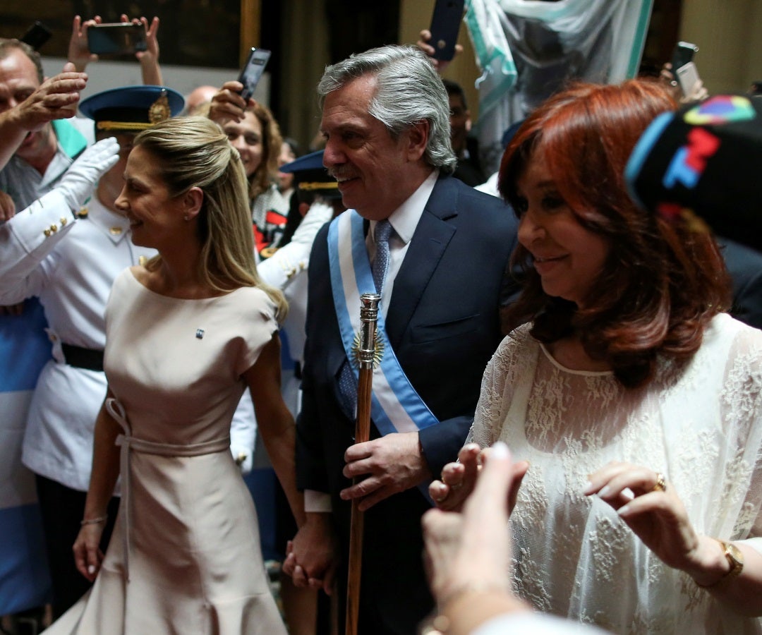 Foto: Reuters / A la salida del acto de juramentación, Alberto Fernández con su esposa Marcela Luchetti y la vicepresidenta Cristina Fernández de Kirchner