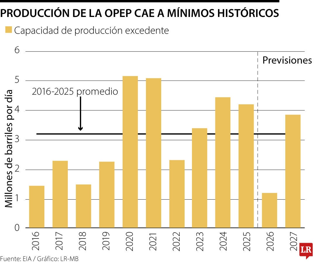 Esta baja en la producción petrolera estuvo impulsada por las pérdidas en Irak, Arabia Saudí, Emiratos Árabes Unidos y Kuwait