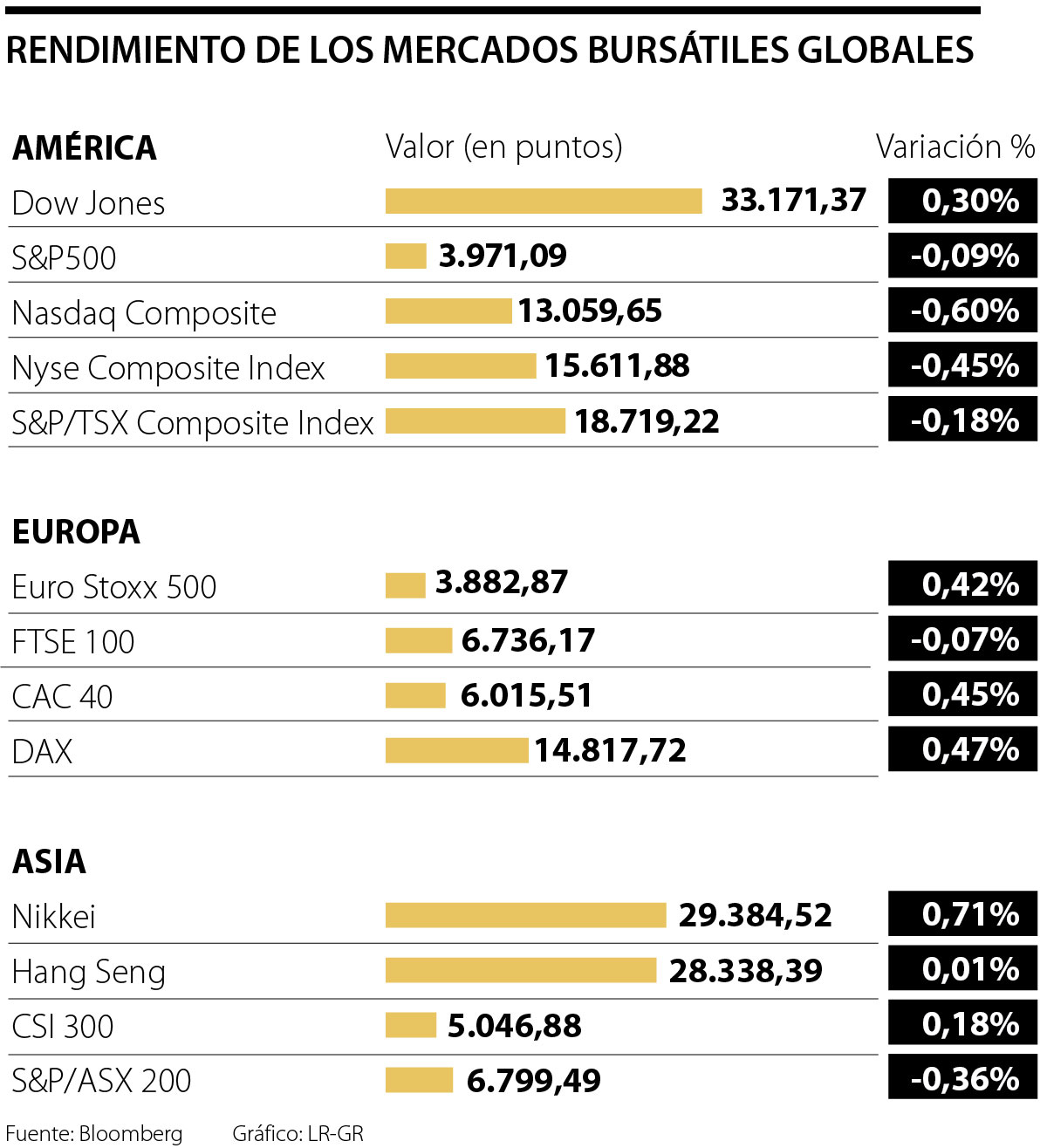 El lunes, varios de los principales índices de acciones en Estados Unidos registraron números rojos. El S&P500 tuvo una caída de 0,09%, el Índice Nasdaq disminuyó 0,60% y el Índice de la Bolsa de Nueva York perdió 0,45%. De los principales indicadores del mercado de renta variable en ese país, solo el Índice Dow Jones tuvo una variación positiva de 0,30%.