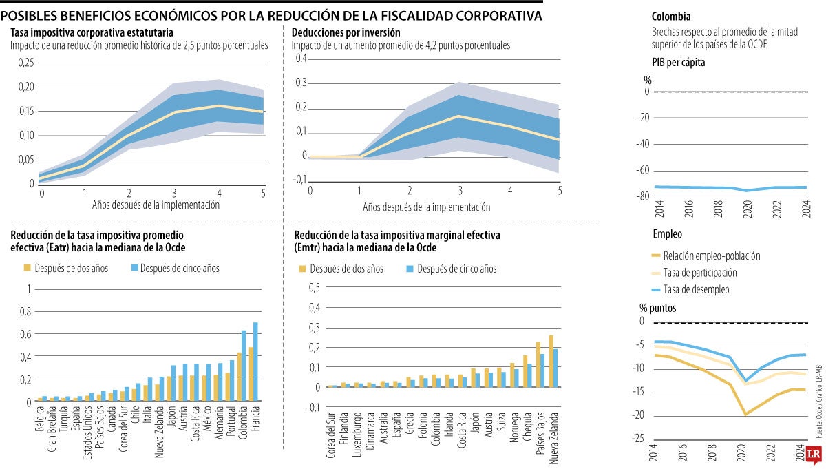 La Ocde señala que bajar 10 puntos el impuesto de renta en Colombia elevaría productividad en 0,7 puntos y tendría un mayor impacto en el PIB en Colombia y Chile