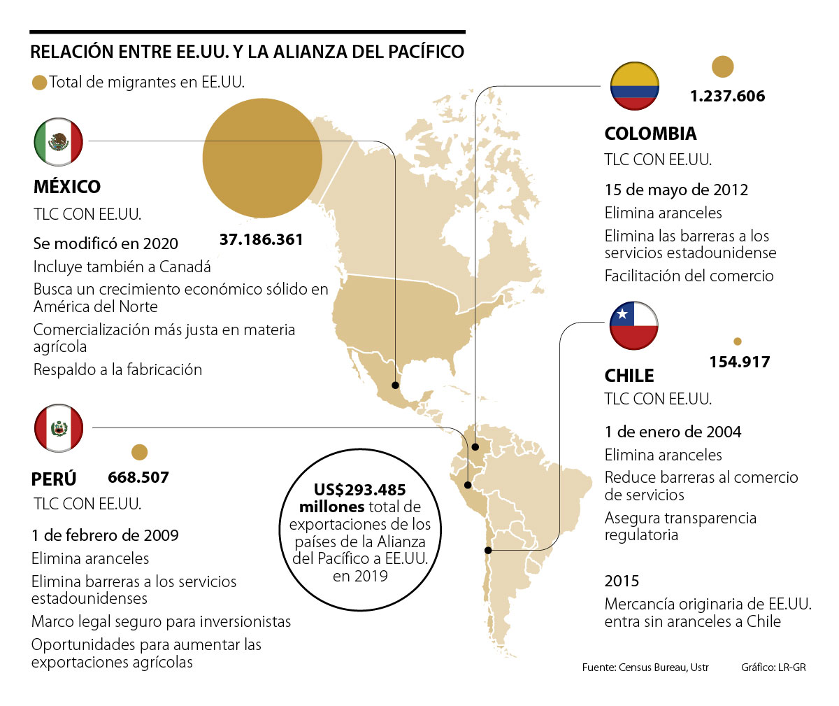 Según el más reciente censo estadounidense hay más de 328 millones de migrantes latinos legales en EE.UU.; de la Alianza del Pacífico México es el que más tiene con 37 millones; luego Colombia con un millón; Perú, más de 668.507 y Chile 154.917.