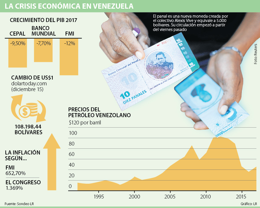 El colectivo Alexis Vive creó el panal, una nueva moneda que equivale a 5.000 bolívares, más que el tipo de cambio oficial, ya que un dólar en el Dicom está en 3.500 bolívares. Esta nueva moneda fue creada para que en medio de la crisis por la falta de efectivo, los residentes del barrio 23 de enero, de Caracas, pudieran adquirir los productos de la cesta básica. Los nuevos billetes, que tienen denominaciones de 1, 5 y 10 (en este aparece la imagen de Hugo Chávez) panales, entraron en circulación el viernes.