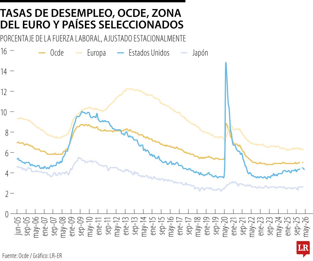 Tasa de desempleo de la Ocde se mantuvo estable en 5% en diciembre de 2025