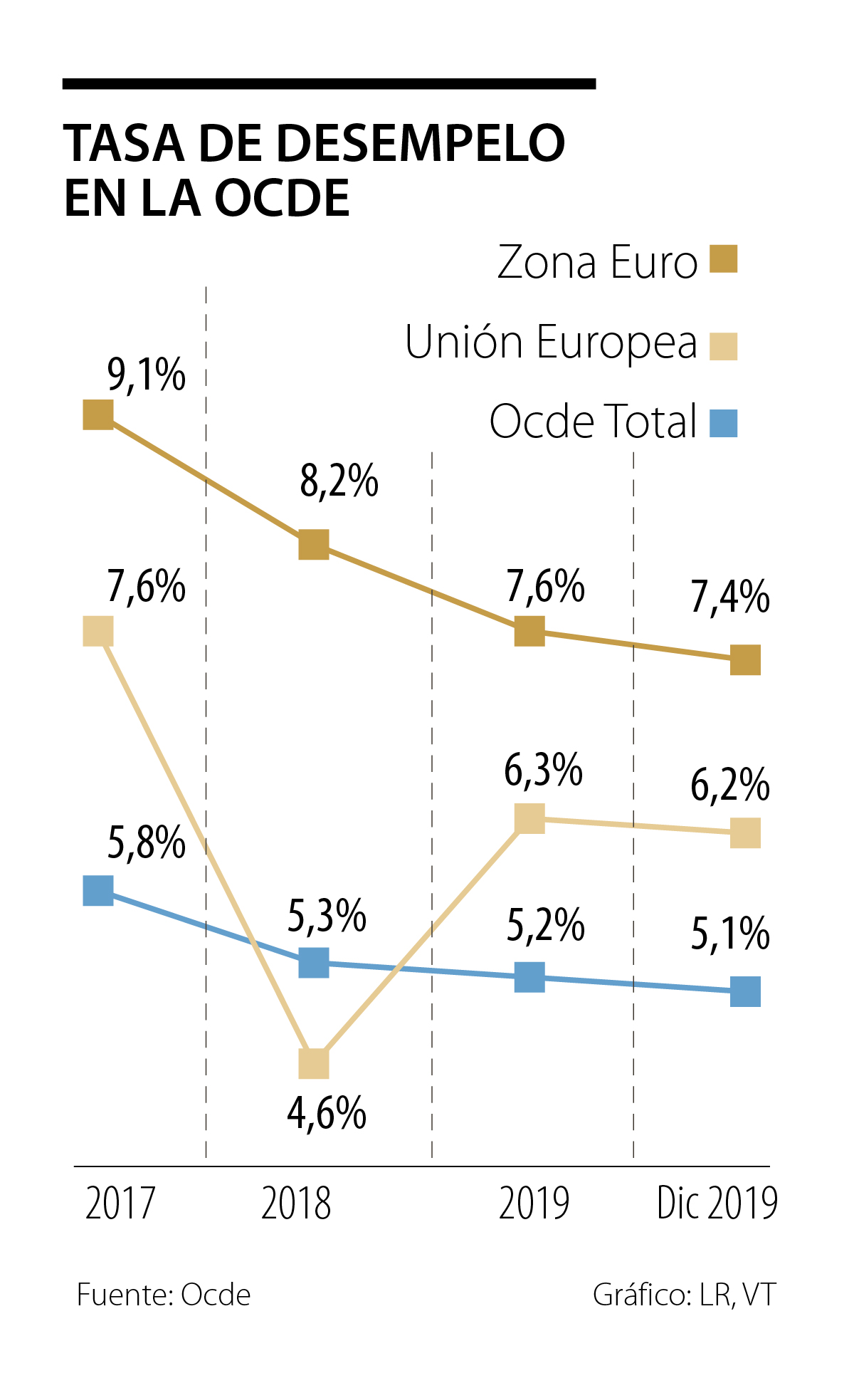 La Organización para la Cooperación y el Desarrollo Económicos (Ocde) presentó su informe mensual de empleo. Según la publicación, la tasa de desempleo de los países pertenecientes al club se mantuvo estable en 5,1% en diciembre del año pasado. Esto quiere decir que 32,6 millones de personas estaban desempleadas durante el último mes del año.