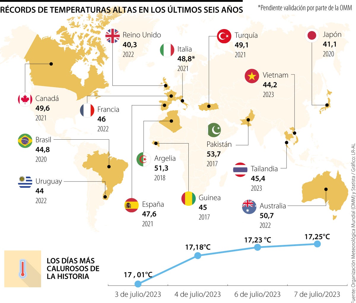 Las olas de calor prolongadas han alcanzado récords históricos este mes, siguiendo la alerta de la Organización Meteorológica Mundial (OMM) que notificó el inicio de la temporada del fenómeno de El Niño con condiciones climáticas perjudiciales en todo el mundo.
