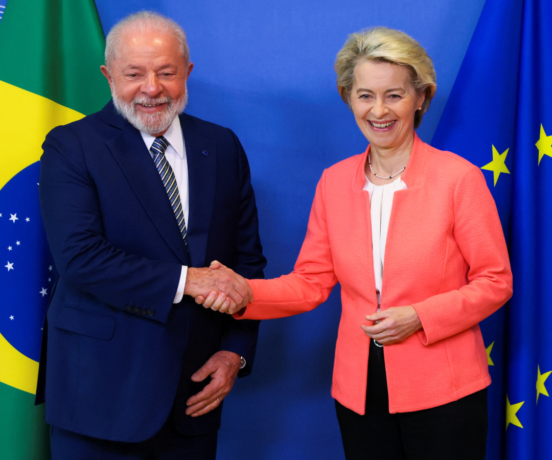 Previo a la inauguración de la Cumbre UE-Celac en Bruselas, Ursula von der Leyen, se reunió con el presidente de Brasil, Luiz Inácio Lula da Silva, con el que afinó detalles sobre las negociaciones entre la Unión Europea y Mercosur (Argentina, Brasil, Paraguay y Uruguay).