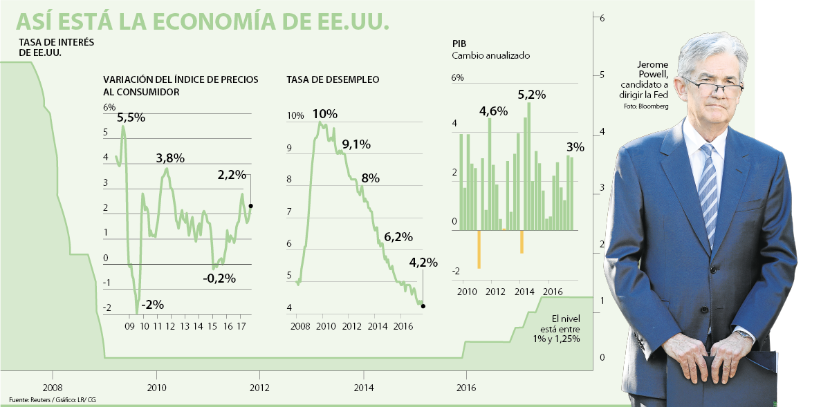 Todos los países como Colombia tienen sus ojos puestos sobre Jerome Powell, el próximo presidente de la Reserva Federal a partir de febrero del próximo año. Cualquiera que sea la política monetaria que lidere el sucesor de Janet Yellen tendrá impacto en los países de la región, en medio de un ambiente de desaceleración que llega cuando el banco central más poderoso está en pleno endurecimiento monetario.