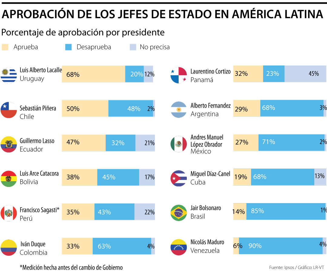 La firma de investigación de mercados y consultoría Ipsos publicó recientemente una encuesta realizada a los principales líderes de opinión de América Latina, que muestra cuáles fueron los países y jefes de Estado con la mejor aprobación, tanto a nivel personal como de gestión de la crisis.