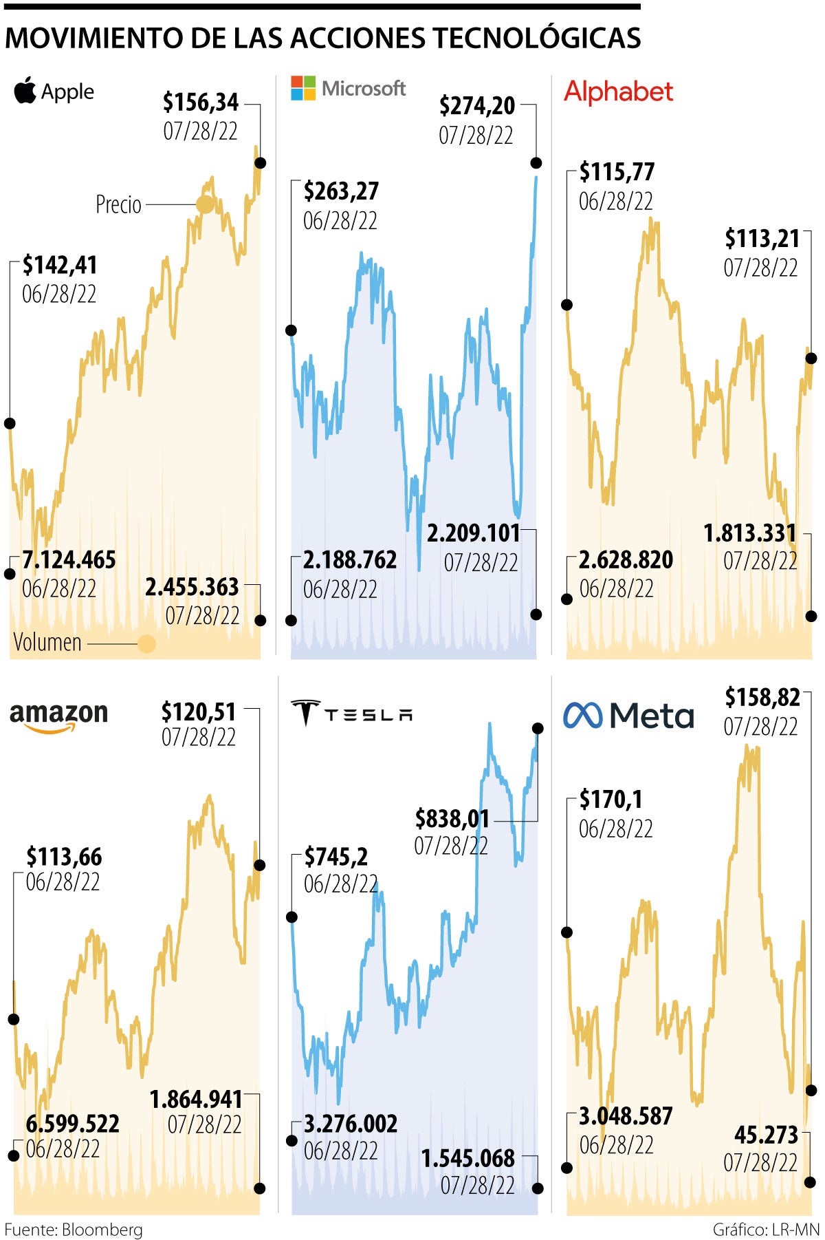 De hecho, el rally demuestra que las expectativas de los inversionistas son altas para las ganancias trimestrales de cada sociedad. Los resultados sorprendentemente positivos de Microsoft y la matriz de Google, Alphabet, también han subido la apuesta para Apple.