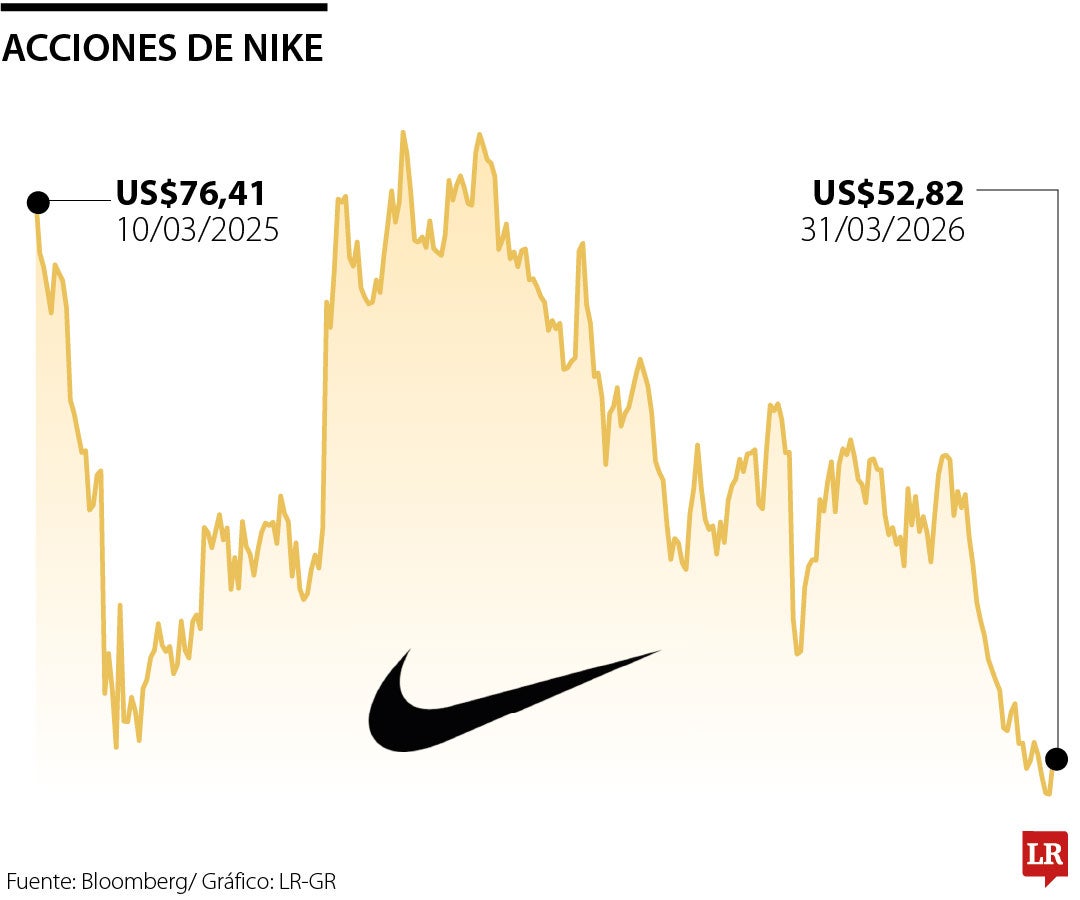 Las acciones de Nike cayeron 9,1% en las operaciones posteriores al cierre de la sesión en Nueva York. Hasta el cierre del martes, las acciones habían caído 17% en lo que va del año.
