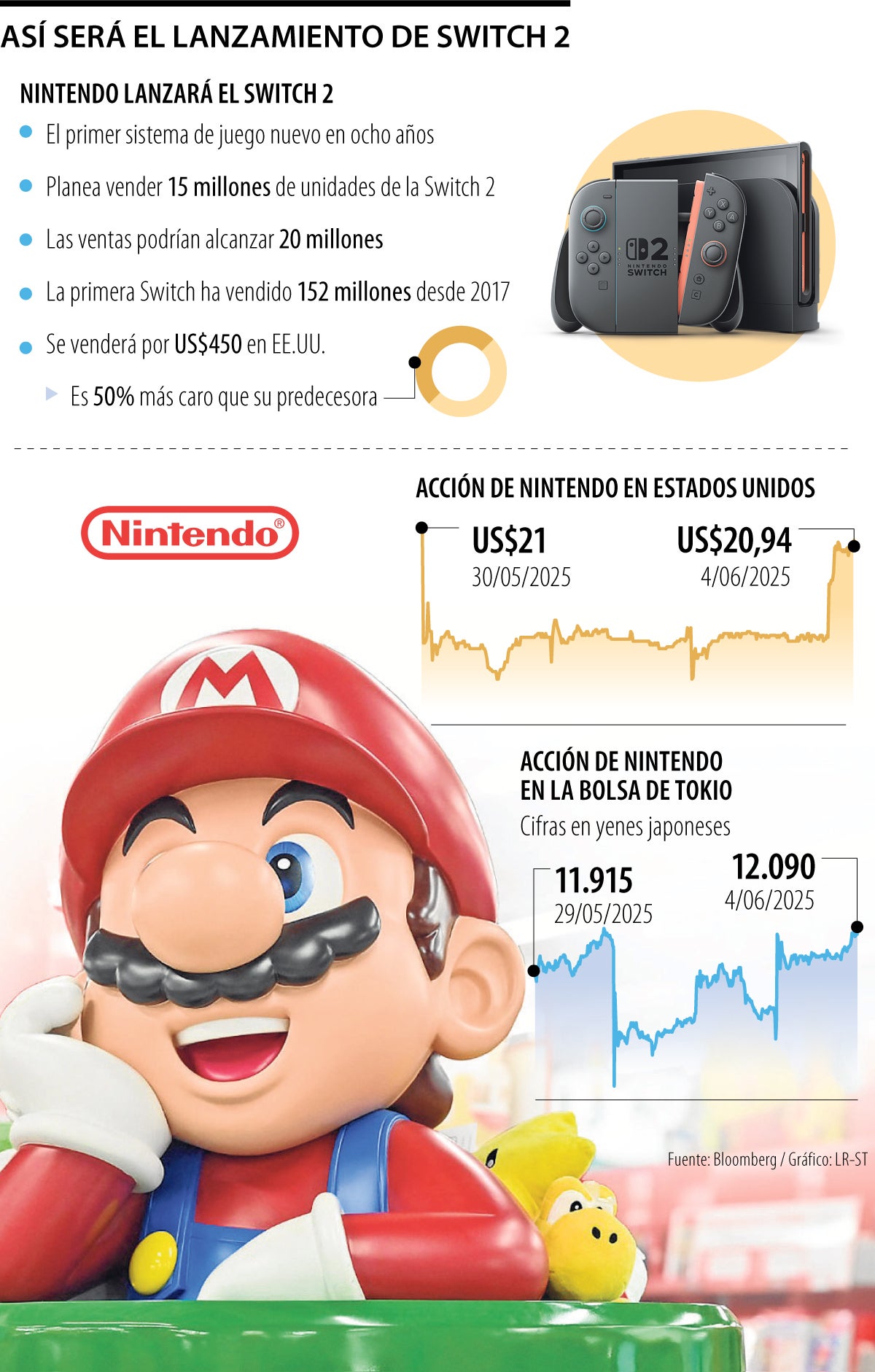 Según Bloomberg, la Switch 2 se venderá por US$450 en Estados Unidos, 50% más que su predecesora, que cuesta unos US$300. Nintendo también venderá algunos juegos, como Mario Kart World, por US$80, y no ha descartado un aumento del precio del hardware en respuesta a los aranceles del presidente Donald Trump.