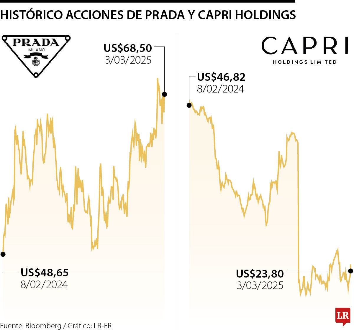 Capri Holdings subió hasta 9,6% antes del inicio de las operaciones regulares en Nueva York el lunes. Las acciones de Prada ganaron hasta 4,1% en Hong Kong, donde cotizaron en bolsa en 2011, en un guiño a la importancia del mercado chino.