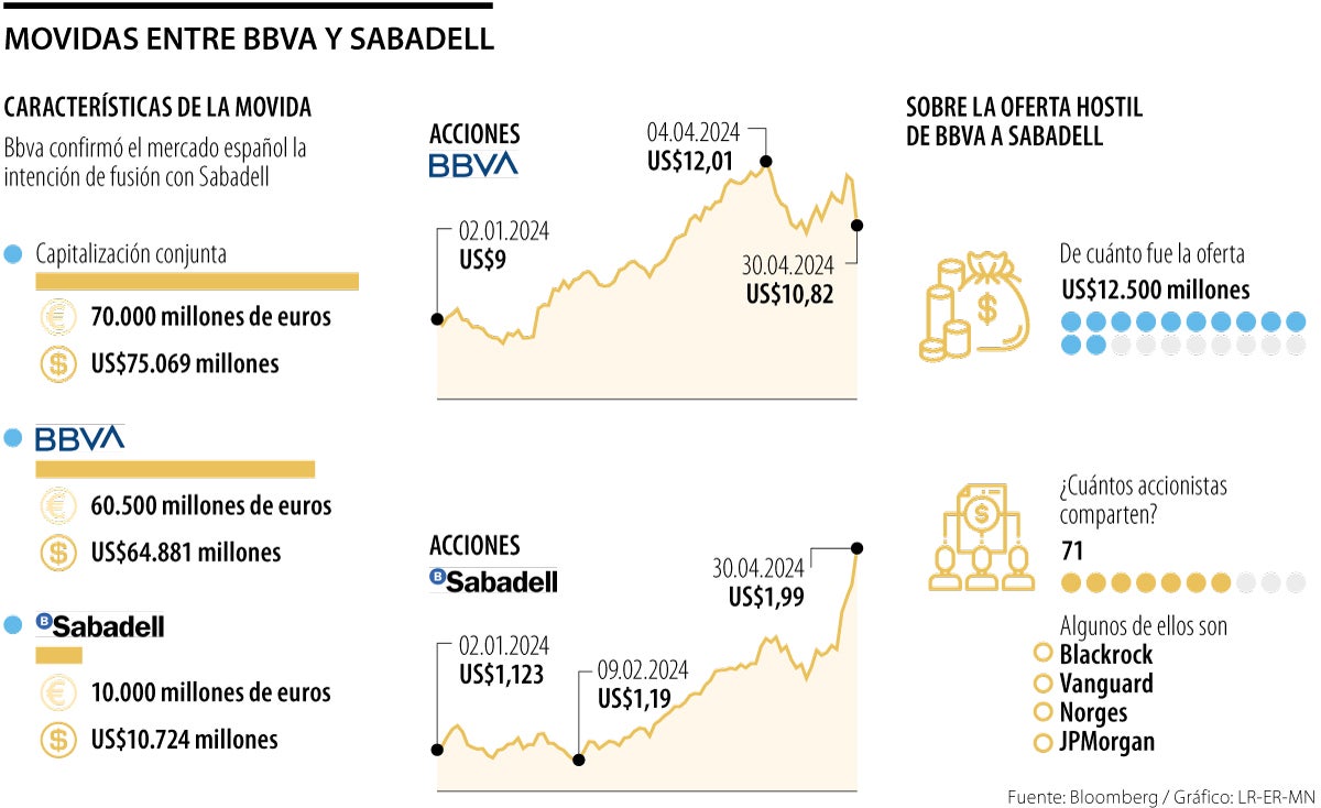 JPMorgan, UBS y Rothschild son los asesores financieros de Bbva, y Garrigues del legal; Goldman Sachs, Morgan Stanley y Uría trabajan con el banco Sabadell.