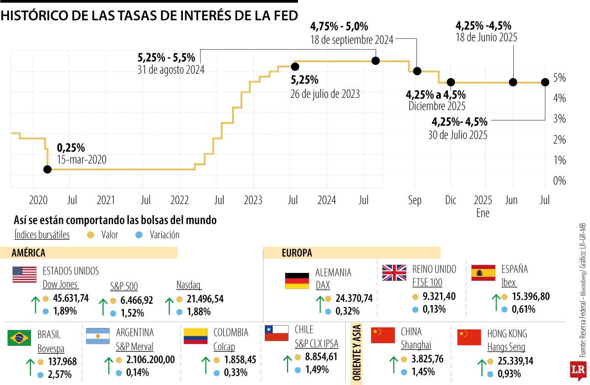 Los principales ETF que replican acciones, bonos del Tesoro, crédito corporativo e incluso criptomonedas registraron avances generalizados, con un aumento cerca a 1,3%. El S&P subió 1,6%, con el repunte de las empresas tecnológicas de gran capitalización. Los operadores aumentaron las apuestas sobre un recorte de la FED el próximo mes, estimando una probabilidad de 85%.