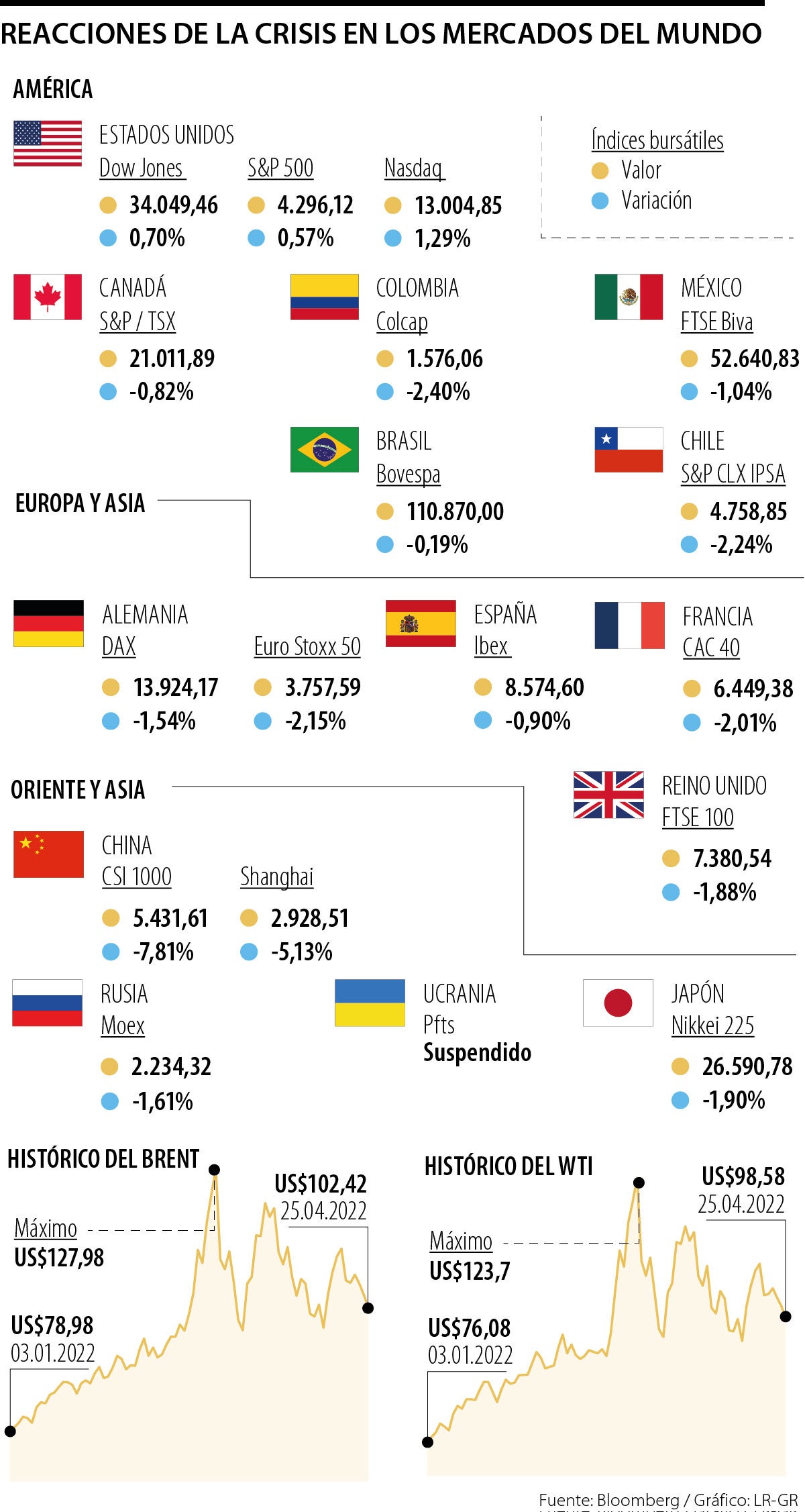 Las acciones en el mundo permanecen en rojo, por ejemplo, en Estados Unidos, antes de una semana ocupada para las ganancias de las Big Tech, mientras que las de Europa y Asia también bajaron, ya que el brote de covid en China continuó agravando los temores provocados por un endurecimiento más rápido de la Reserva Federal.