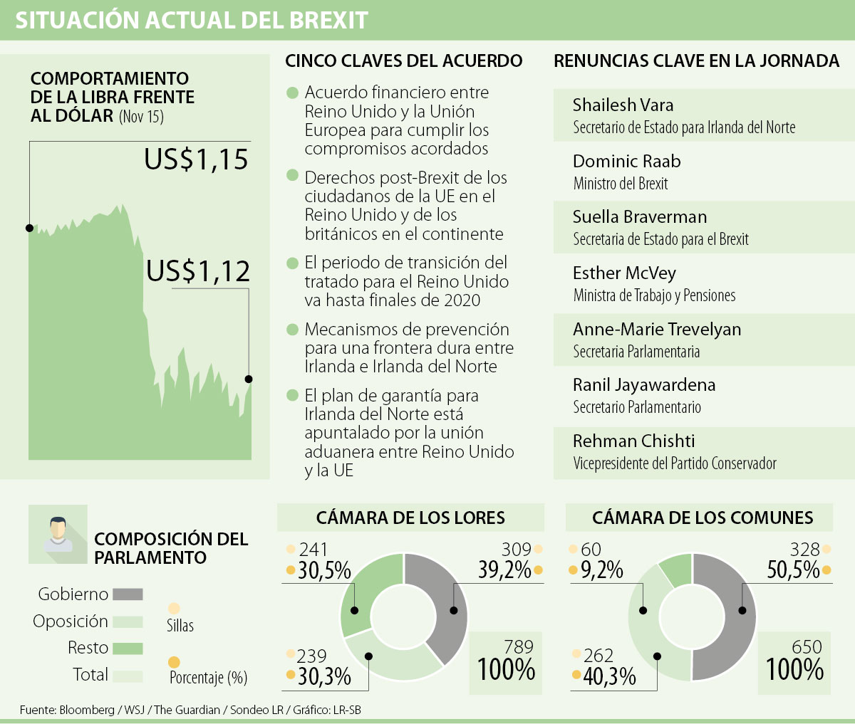 Pese a que May defendió estas ideas el miércoles como “lo mejor que se había podido negociar”, algunos miembros del Partido Conservador no opinaron lo mismo, como el parlamentario Jacob Rees-Mogg. A esta postura se sumaron miembros de alta relevancia dentro del proceso, como el ministro del Brexit, Dominic Raab, quien renunció a su cargo asegurando que “no podía apoyarlo con buena conciencia”.