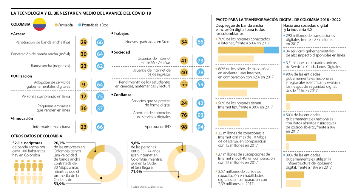El avance al que se refiere Barquin se da en un momento en el que Colombia tiene un ‘Pacto para la Transformación Digital de Colombia 2018 - 2022’, en el que se destacan algunos resultados como que actualmente 70% de los hogares conectados están conectados a internet, mientras que en 2017 era 50%, entre otros puntos .