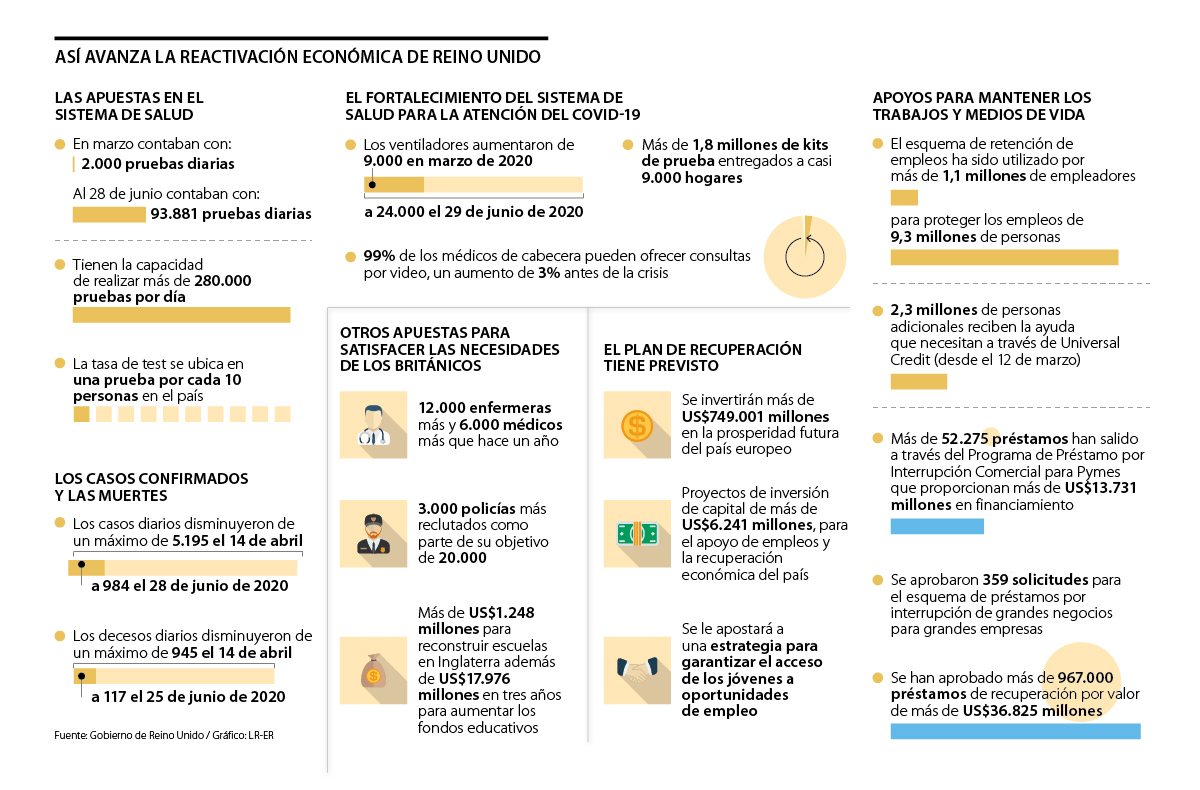 Con el paso de los meses, las autoridades han dado a conocer diferentes estrategias para reactivar los mercados sin dejar de lado la lucha contra el covid-19, virus que le ha costado la vida a más de 520.000 personas en el mundo. Uno de los países que ha tomado la delantera en materia de elaboración y aplicación de las hojas de ruta para el reinicio de la economía es Reino Unido, en donde el gobierno, por ejemplo, ha entregado US$13.731 millones en financiamiento para las Pyme.