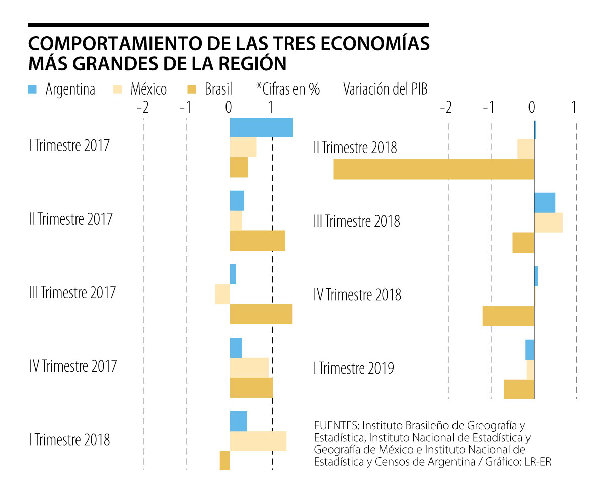 Las mayores economías de la región, Brasil, México y Argentina, se han contraído simultáneamente por segunda vez en poco más de tres años