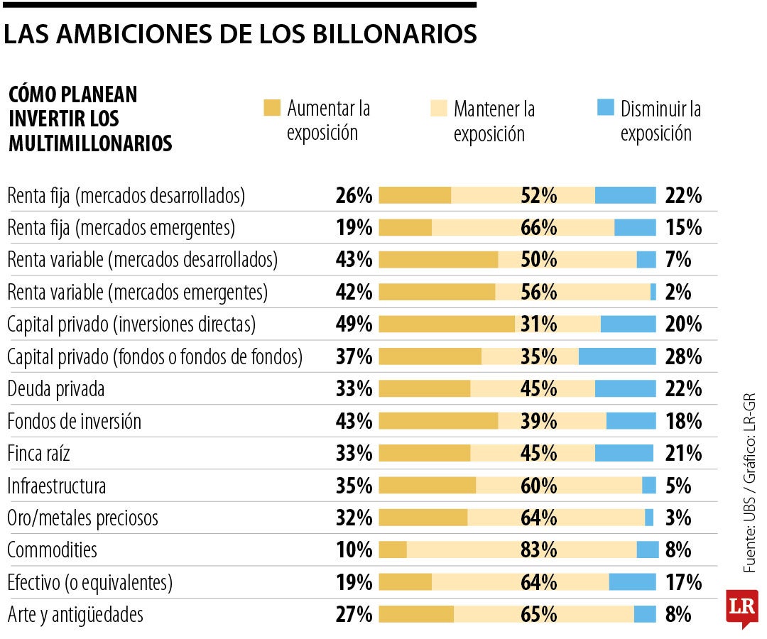 El informe más reciente de UBS afirma que cerca de 42% de los multimillonarios buscarían invertir más en mercados emergentes y 43% lo harían en mercados avanzados