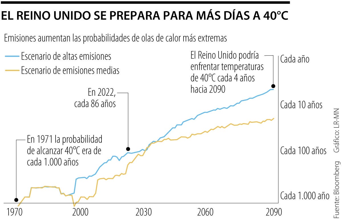 Ciudades como Londres son particularmente vulnerables durante las olas de calor debido a que los edificios absorben el calor durante el día y lo retienen por la noche, manteniendo las temperaturas más altas de lo que podrían ser en el campo. Las temperaturas récord podrían ser la nueva normalidad en el Reino Unido, a medida que el cambio climático hace que las olas de calor sean cada vez más frecuentes.