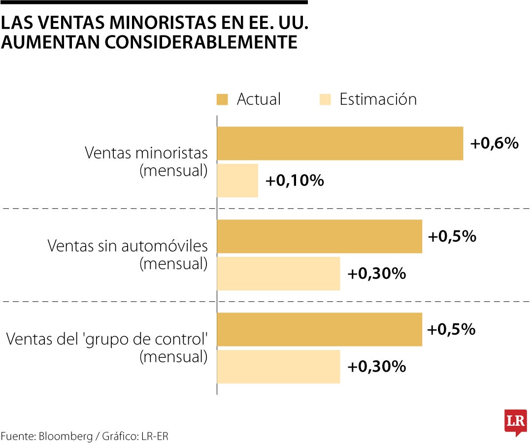 Al menos 10 de las 13 categorías registraron aumentos, impulsadas por las ventas de vehículos motorizados, que subieron tras caídas consecutivas. El gasto en restaurantes y bares, la única categoría del sector servicios en el informe minorista, avanzó 0,6%.