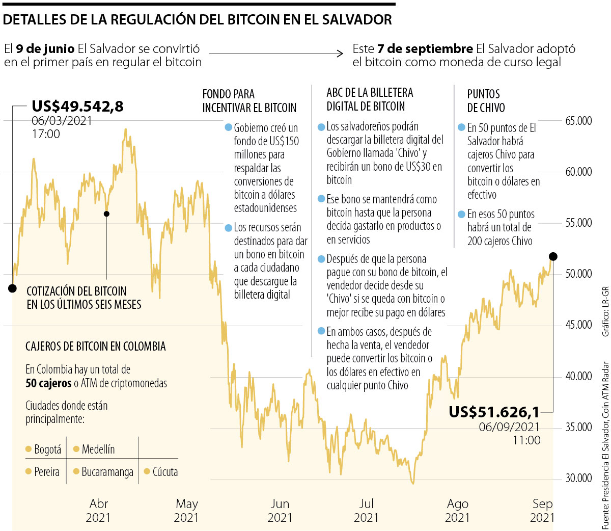 El uso del bitcoin como moneda legal sin límite de transacción o valor fue aprobado por la Asamblea Legislativa el pasado nueve de junio. Para reglamentar su uso, el gobierno del presidente Nayib Bukele creó la plataforma ‘Chivo’, la cual podrá ser descargada por todos los usuarios. Estos, a cambio, recibirán US$30 en bitcoin para incentivar así la criptomoneda