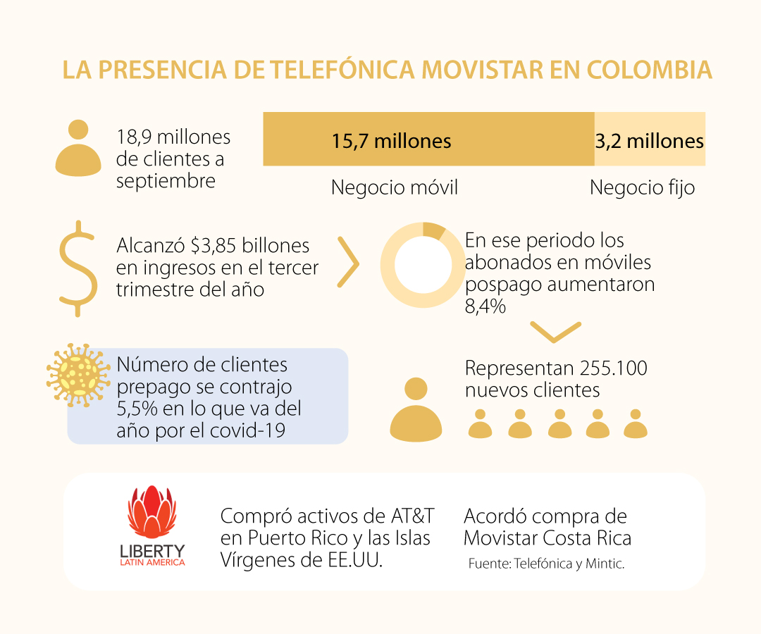 Telefónica Colombia reportó 558 millones de euros (US$678 millones) de ingresos operativos antes de su depreciación en 2019