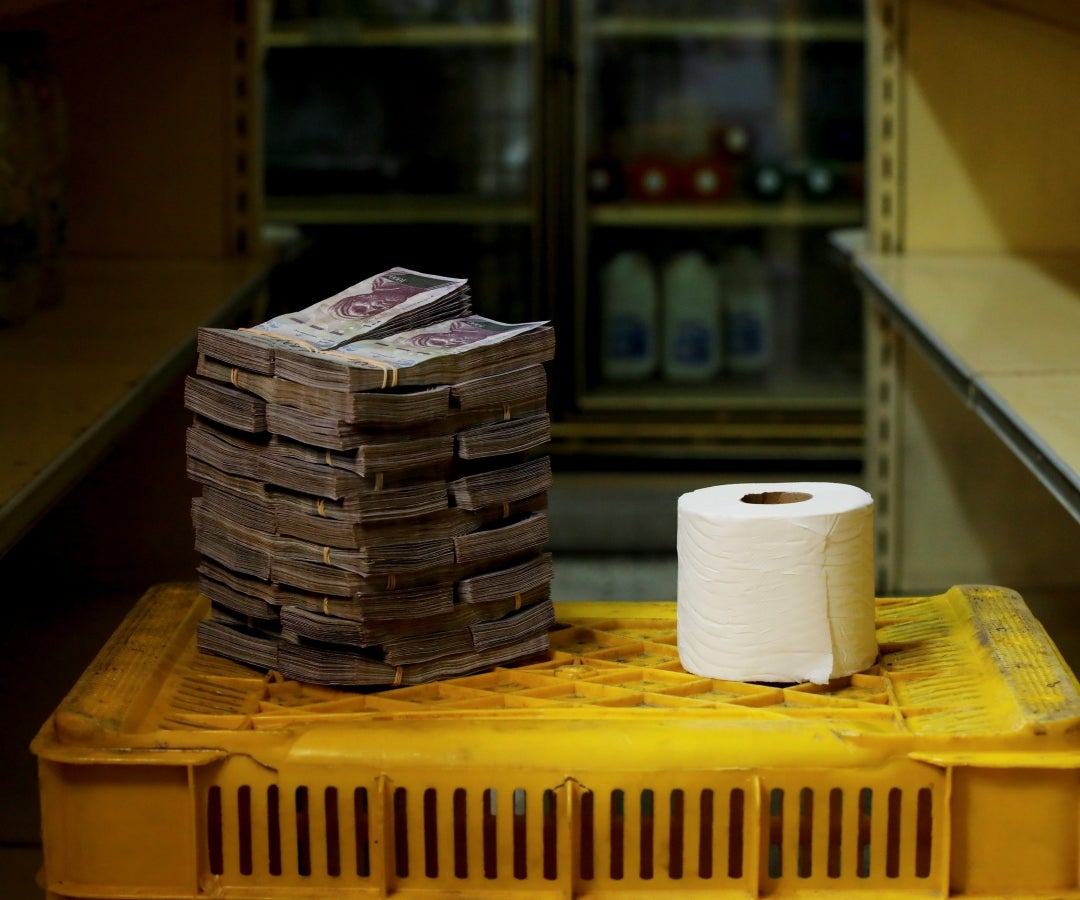 Rollo de papel higiénico junto a 2.600.000 bolívares, su precio, equivalente a US$0,40.