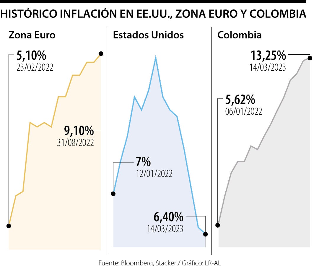 La inflación de la Zona Euro tocó picos de 30 años, hoy en día está en 8,6%, mientras que la de Estados Unidos que el mes pasado se ubicó en 6,4% son solo un ejemplo de la presión inflacionaria que según Oxford Economics fue la principal secuela que dejó la guerra. De hecho, también recuerdan que el problema del IPC global no se podría controlar hasta finales de 2024 o comienzos de 2025.