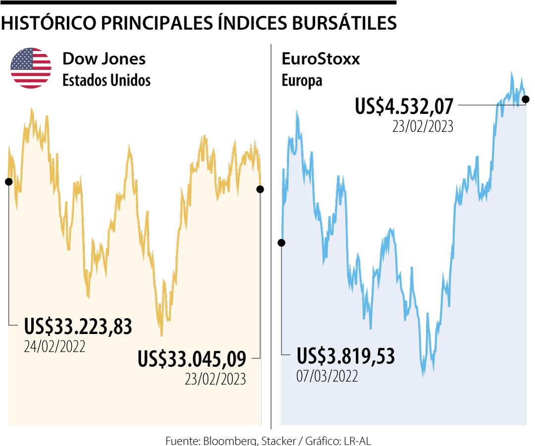 Los rápidos aumentos de los precios de las materias primas y la escalada bélica del conflicto entre ambos países desplomaron las bolsas. El Eurostoxx, a medida que iba avanzando la guerra cayó varias veces 3,7% y el Dow Jones ha alcanzado más de 3%.