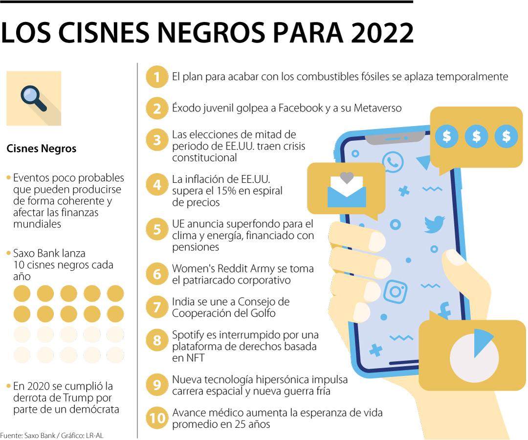 Saxo Bank, que viene realizando este ejercicio año tras año, señala que para 2022 no se tratará de “si tenemos una revolución socioeconómica, sino de cuándo y cómo”. Sus pronósticos para el próximo año están mediados por las “guerras culturales” que se vienen desatando en todo el mundo.