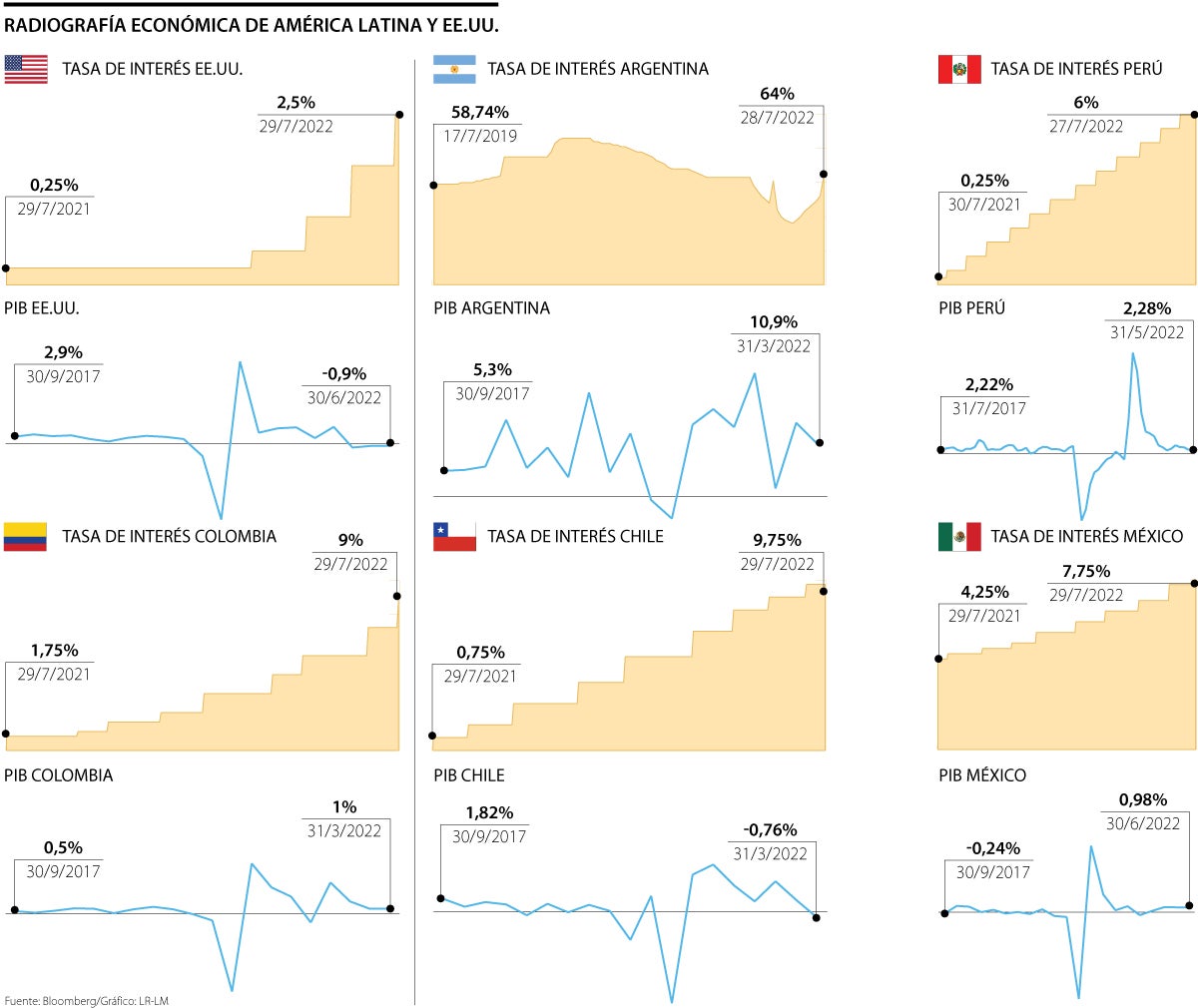El alza de tasas de la Fed vuelve más competitivo a EE.UU. para que los capitales vayan allá a invertir, según dice Moreno. Este efecto también pesa sobre la región. “Para Latinoamérica, todos esos flujos de capital que se venían dando en la prepandemia y que se mantuvieron de alguna manera durante la crisis de covid-19 empiezan a salir hacia economías desarrolladas”, indica Juan Camilo Santana.