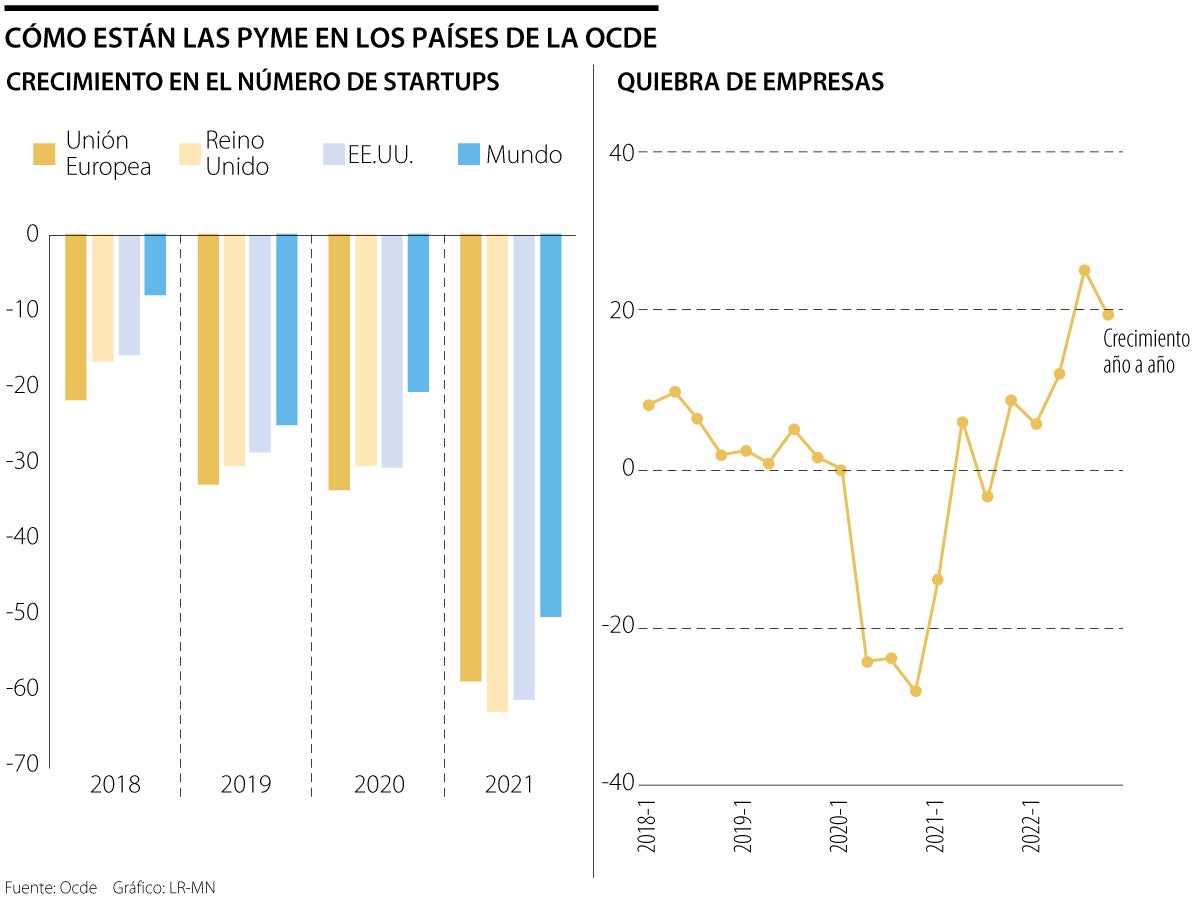 A propósito, la Organización para la Cooperación y el Desarrollo Económicos (Ocde) publicó sus perspectivas de las Pyme y el espíritu empresarial para 2023, en el que destacó que “a medida que se endurecen las condiciones monetarias y se retira el apoyo fiscal, aumentan las quiebras de empresas y las pyme se encuentran nuevamente en riesgo”.