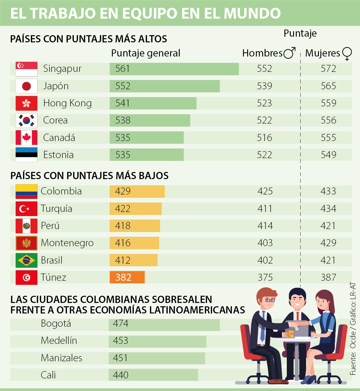 El paso por el salón de clases no solo sirve para aprender sobre lenguaje y matemáticas, sino que también es el escenario donde se sientan las bases para trabajar en grupo. Bajo esta premisa, la Organización para la Cooperación y el Desarrollo Económicos (Ocde), a través de las Pruebas Pisa, evaluó la capacidad de jóvenes de 15 años, provenientes de 51 países, para resolver problemas en conjunto.