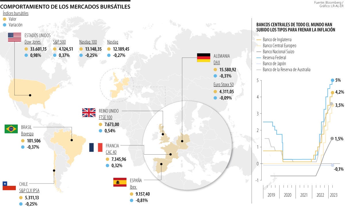 Los comerciantes también se sumaron a las apuestas de ajuste del Banco Central de Inglaterra y el Banco Central Europeo, fijando tasas máximas de 4,69% y 3,63%, respectivamente. Pero, ¿cómo se seguirán comportando de aquí en adelante los mercados con la disparada de los precios del crudo? “Para los mercados petroleros los recortes de la Opep es una buena noticia, pero para el resto del mundo esto es un anuncio pésimo, al ser el petróleo una de las materias primas que más impacta la inflación. Esta es la razón por la cual las bolsas del globo, especialmente en Estados Unidos, se desplomaron. En Colombia, esto no tuvo mayor repercusión gracias a la acción de Ecopetrol”, dijo Orlando Santiago Jácome, gerente de Fénix Valor y analista de mercados.