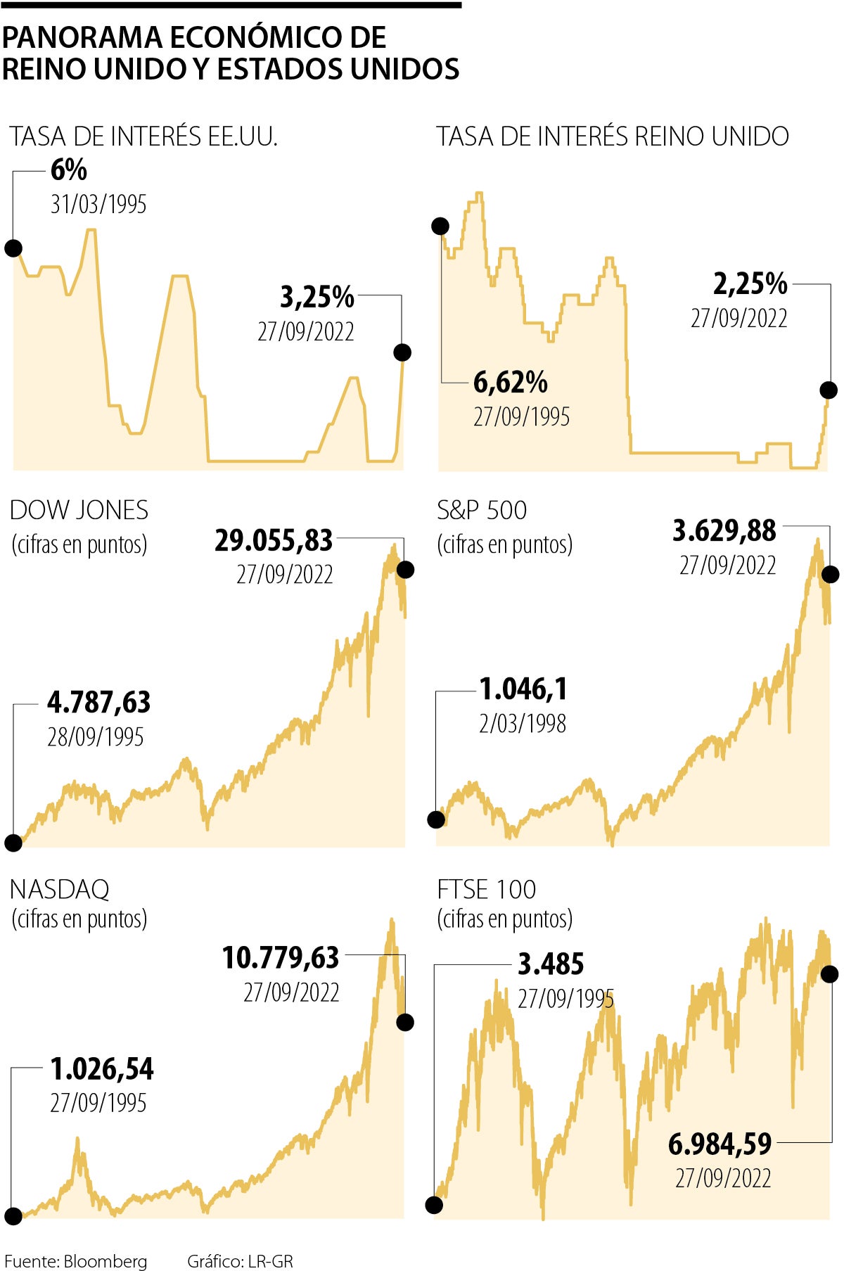 En cuanto a las bolsas, estas han sumado pérdidas que van camino a igualarse a hace 14 años, cuando los mercados financieros se desplomaron ante el conocido caso de las hipotecas subprime. Solo en el último año, el Dow Jones ha retrocedido 16,4%, el S&P 500 ya suma una desvalorización de 17,9% y el Nasdaq -27,6%. El Ftse 100 ha bajado solo 1,11% y el Euro Stoxx 50 desciende 20%.
