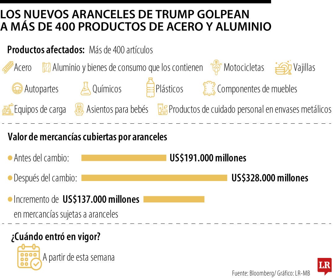 El presidente Donald Trump sorprendió al sector logístico el viernes al ampliar los aranceles sobre el acero y el aluminio para incluir más de 400 artículos de consumo que contienen estos metales, como motocicletas y vajillas. Los agentes de aduanas y los importadores de Estados Unidos recibieron muy poco tiempo para adaptarse al cambio, que entró en vigor el lunes y no excluye los productos en tránsito.